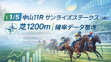 中山11R「迎春ステークス(3勝クラス)」は、芝2200mで行われる定量戦です。